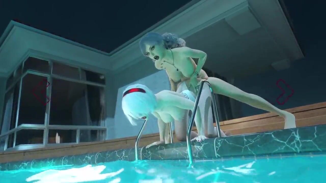 Hot futanari sex near pool - sexy girl sucks cock, and animation shemale fucks bitch and cum on her body