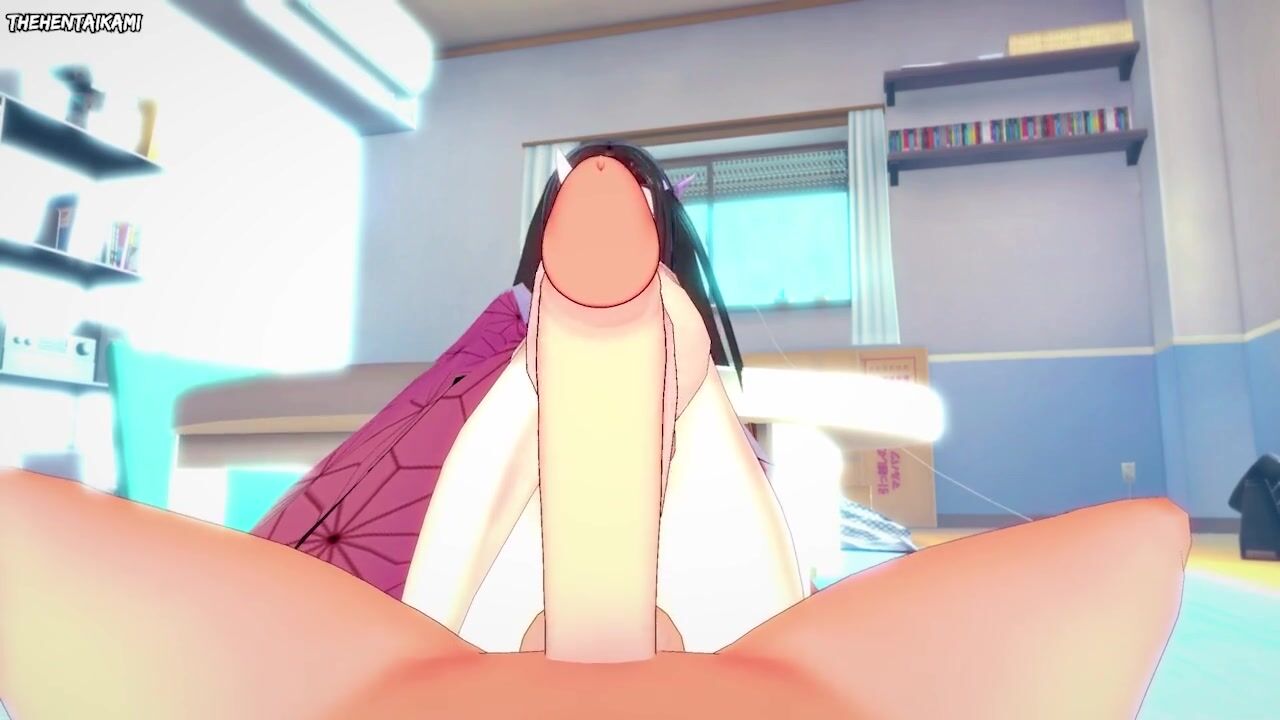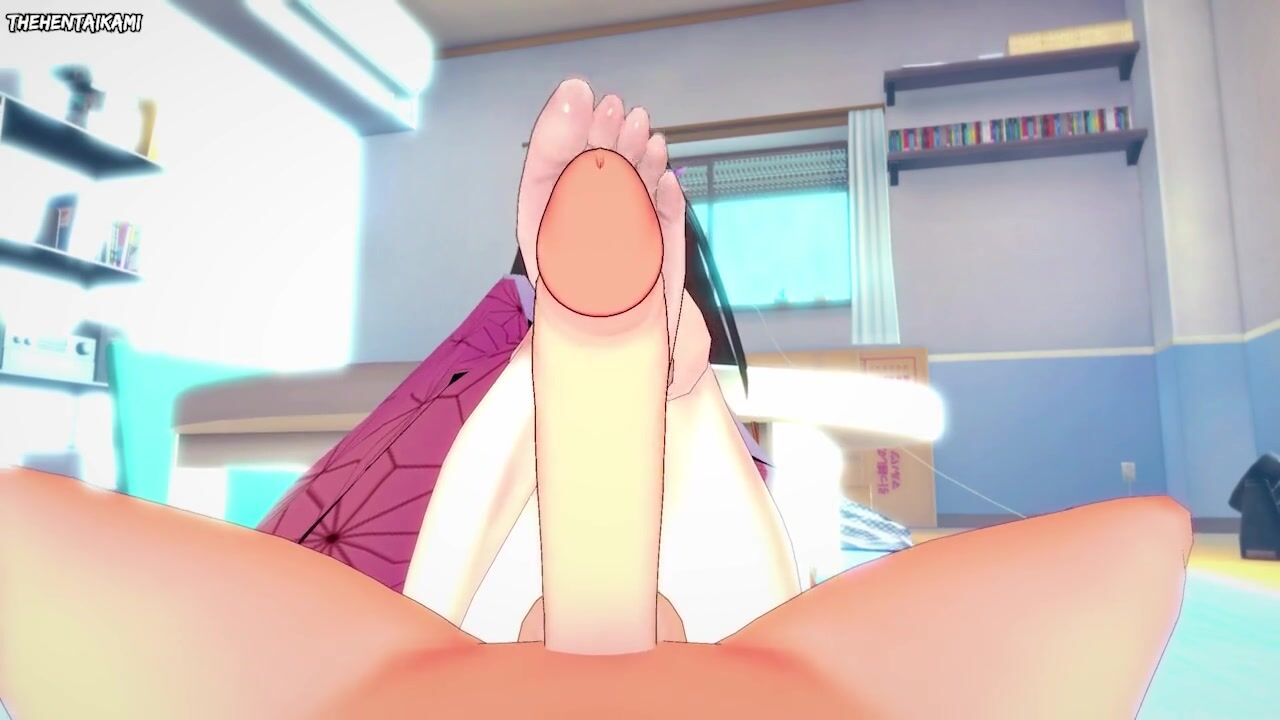 Nezuko from Demon Slayer Gives You A Footjob Hentai POV