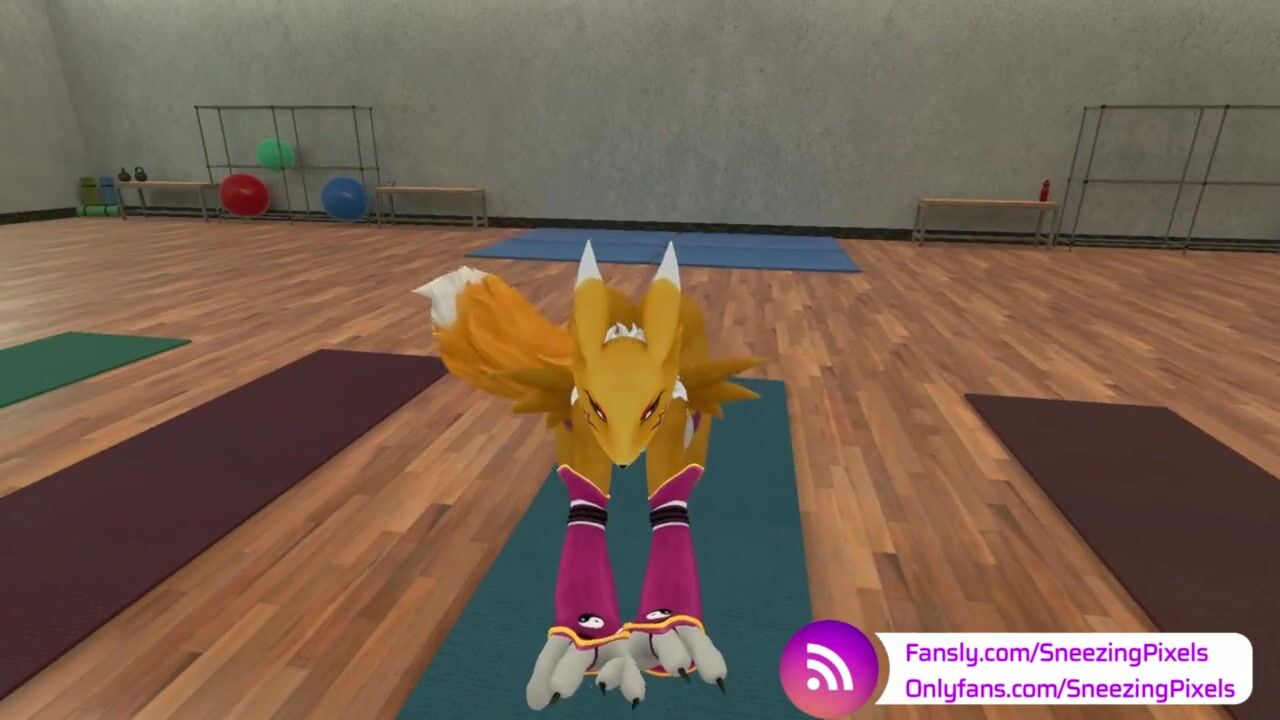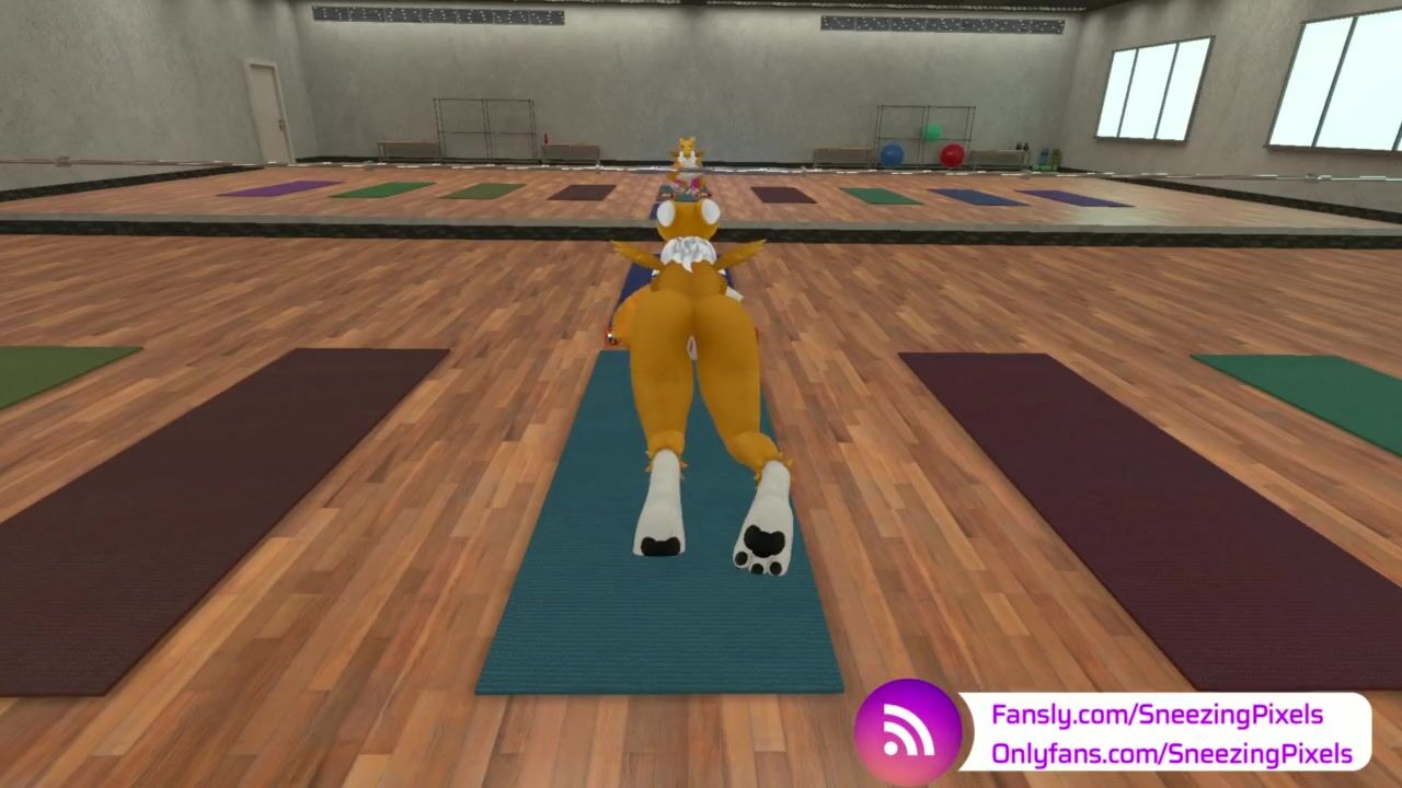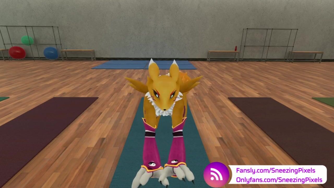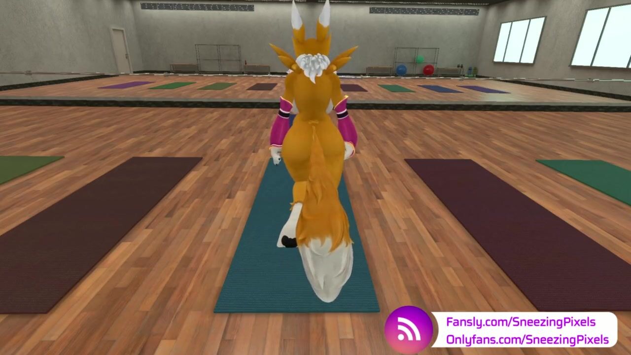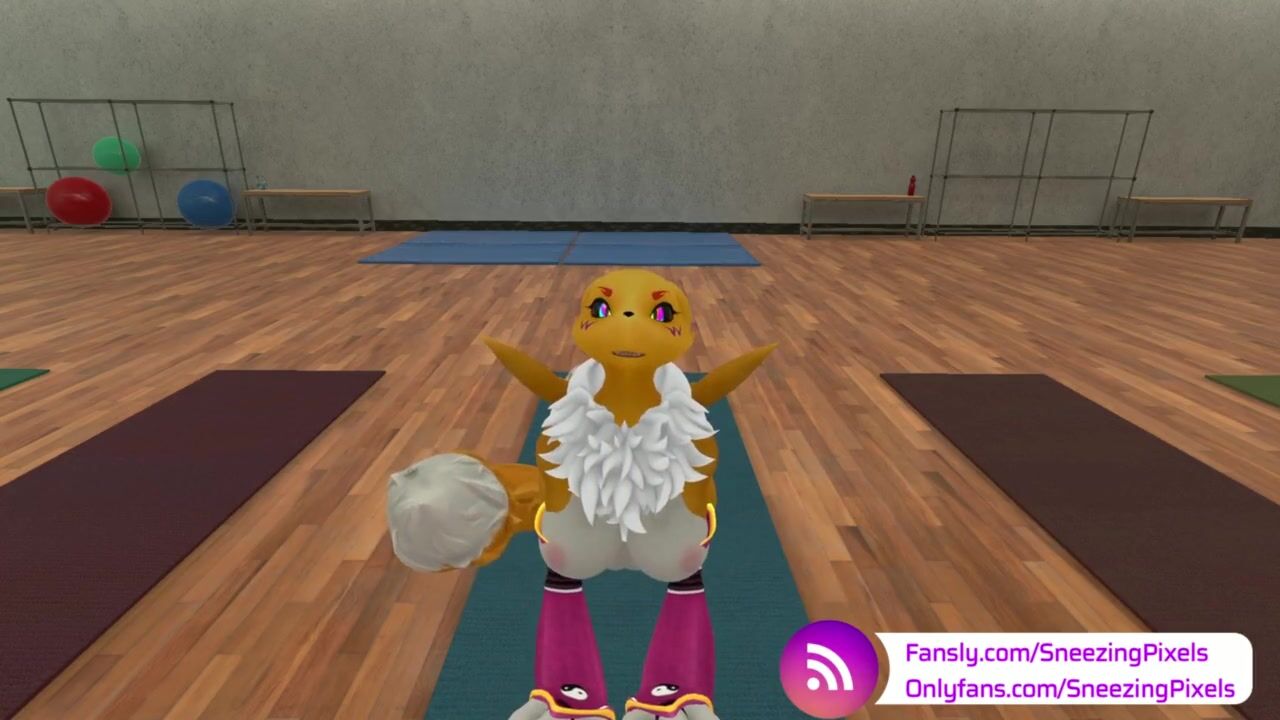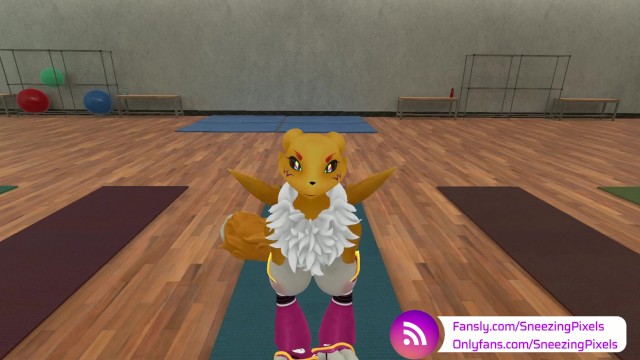 VR Pornstar Sneezing Pixels stretching in the gym, before her photo shoot